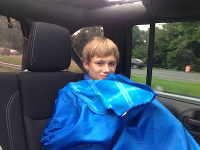 I packed up my Jeep and we headed out. Boy Scout Summer camp was our destination. We decided to put the top down for the ride. Well, a Jeep Mom is always prepared. Or is that a scout motto - Be Prepared. Hmmm! When you have kids riding in your Jeep - a blanket is a good item to keep in your Jeep.