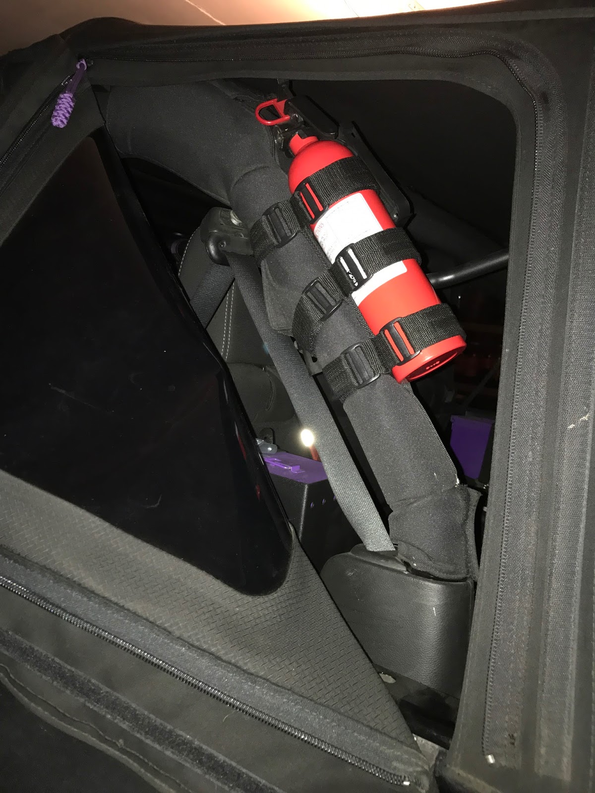 Safety out on the trails is important. A good fire extinguisher paramount. This should be considered standard gear for any rig that goes off road. You are so far away from any help, it could prove to be beneficial in an emergency. There are a ton of mounting options however, I like mine mounted on the roll bars near the back windows. All I need to do is unzip the window to access my fire extinguisher.