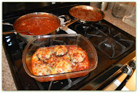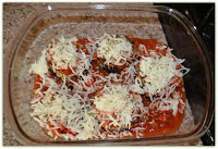Next using my homemade marinara with veggies I set them in a baking dish and topped them with mozzarella cheese.