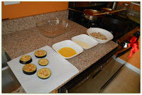 Then I coated them with garbanzo bean flour, egg, and bread crumbs mixed with Parmesan cheese.