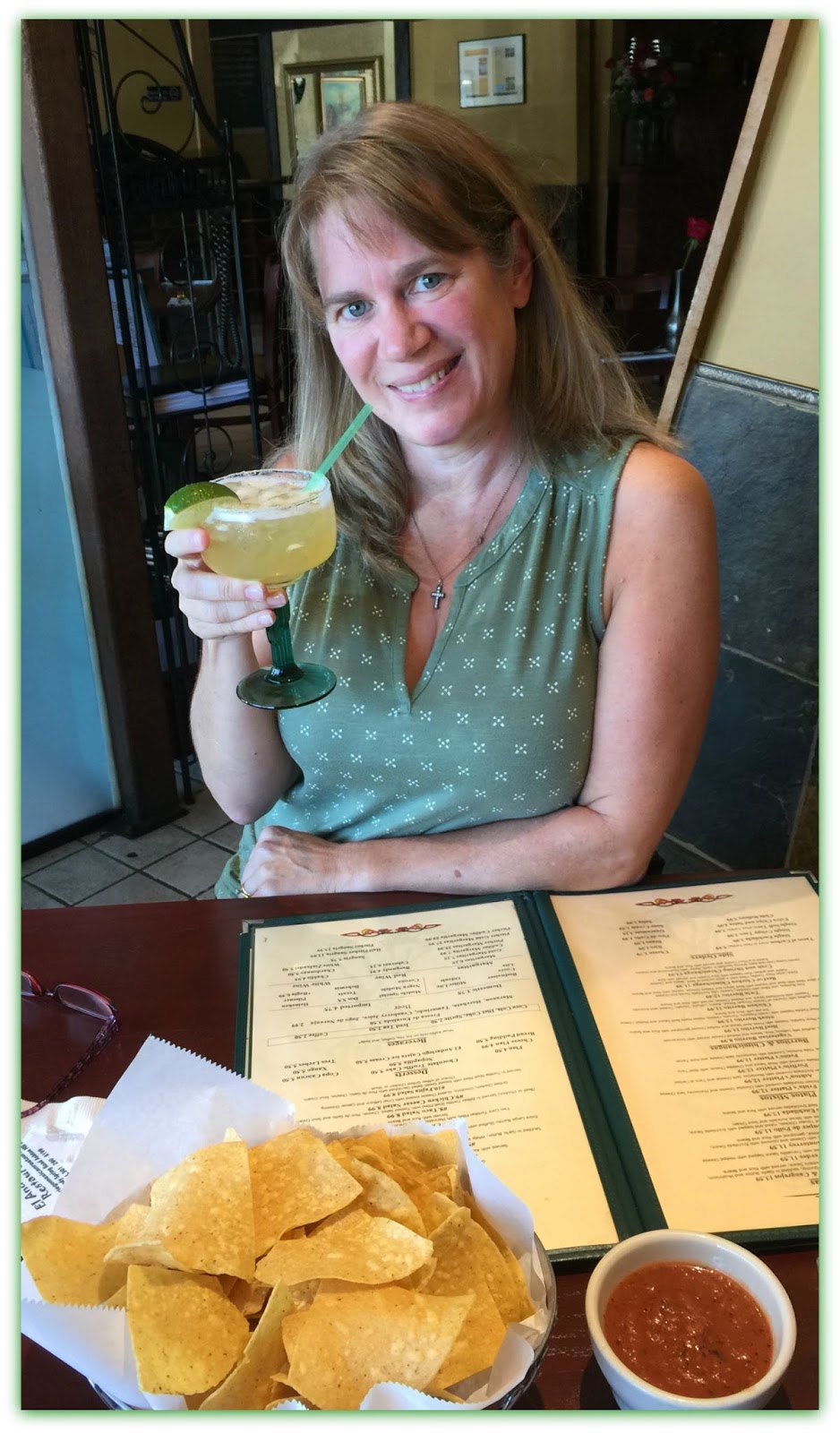 Now that my 50th is drawing near I figured I had better figure out what all the fuss is about. My good friend Jessica took me out to one of my favorite places for lunch for a belated birthday celebration. She bought me my first margarita to try. It was a Cadallic margarita with Grand Marnier an orange-flavored cognac liqueur and a top shelf tequila. The Cadallic Margarita is smoother with a more rich taste.