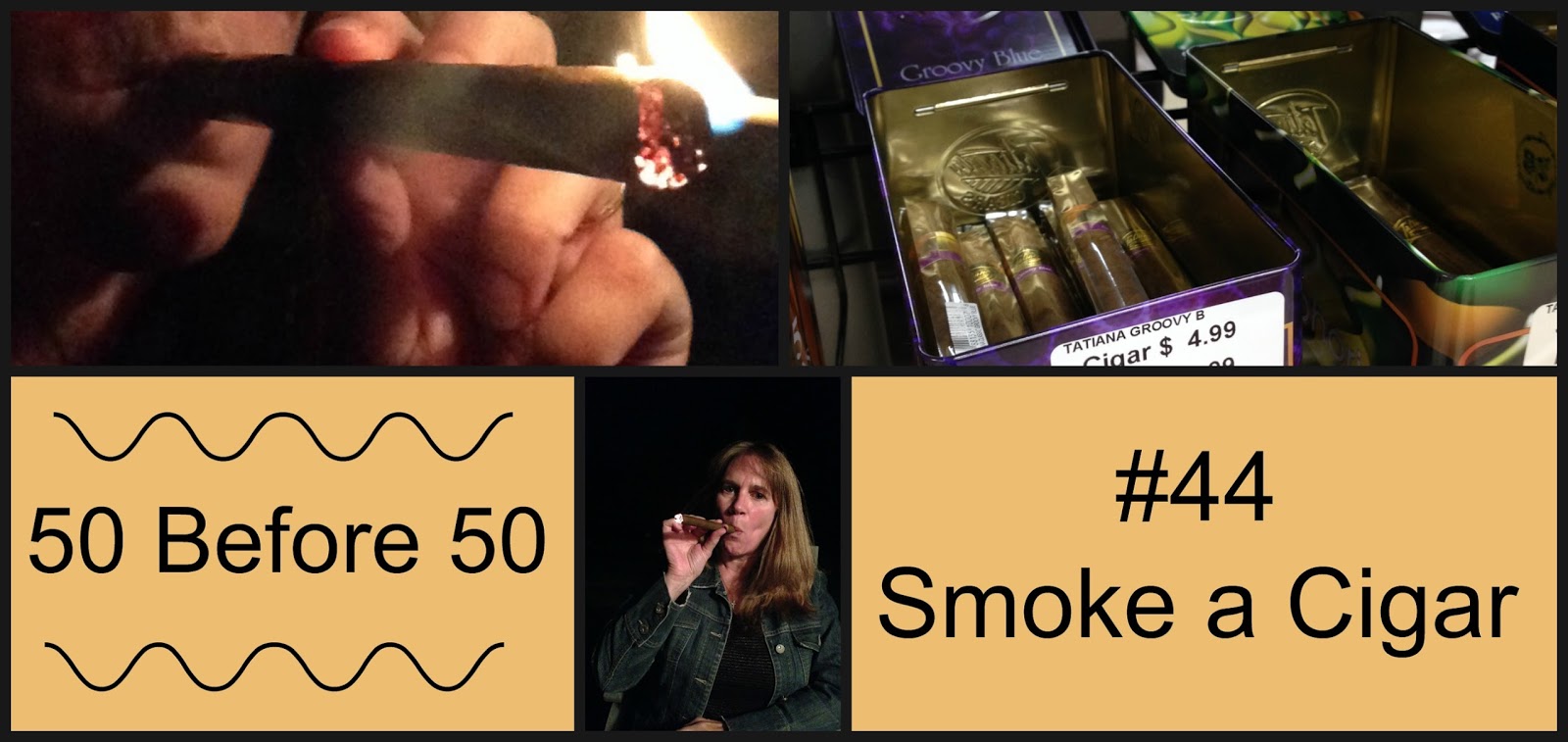 Checking them off one by one trying at least one a week. This past weekend I checked of #44, smoke a cigar. My good friend Jessica bought me the cigar back on my birthday. It wasn't anything fancy or expensive because I didn't know if I would like it. The one I picked out was called groovy blue. It actually looked purple that's why I picked it.