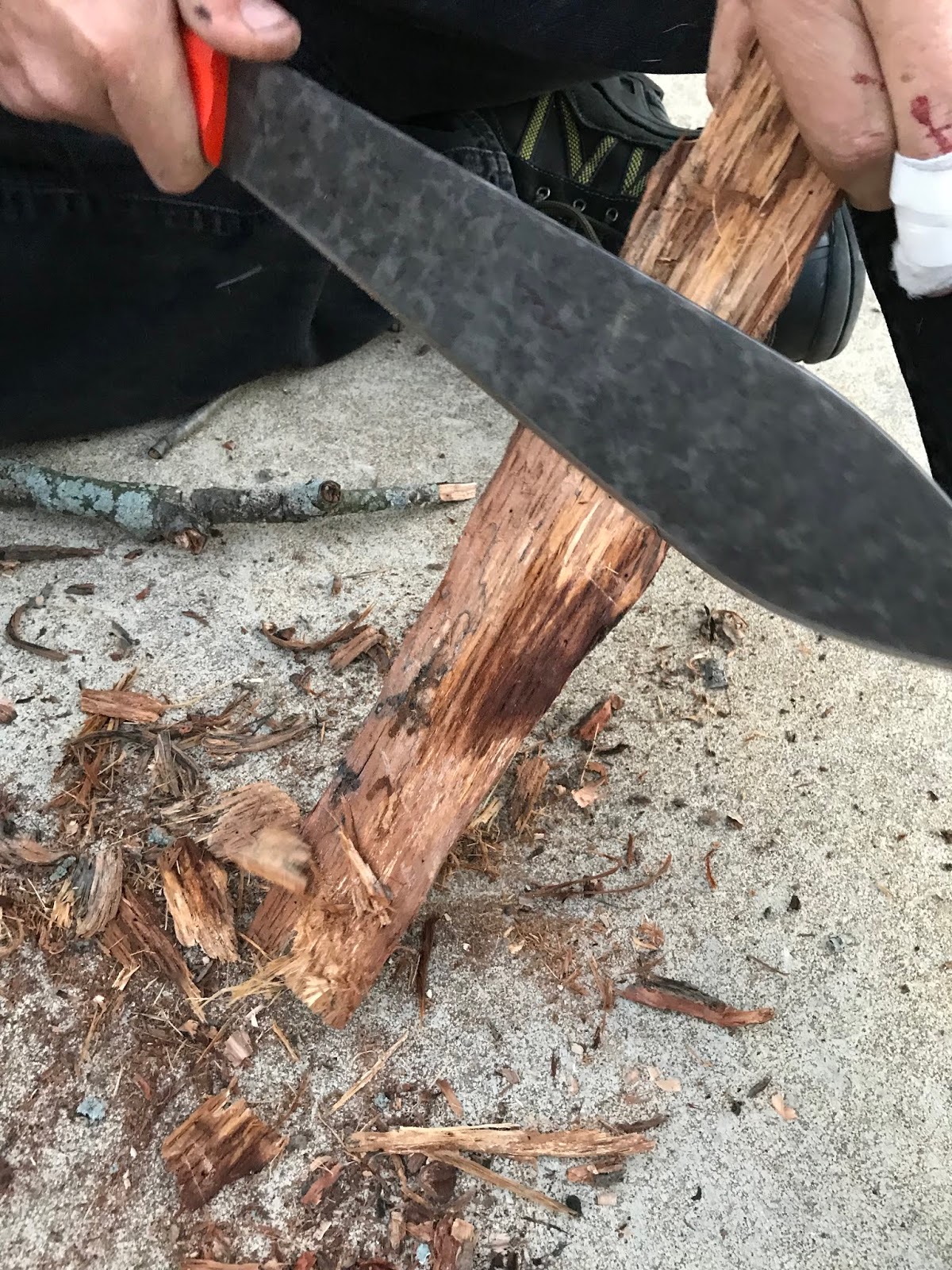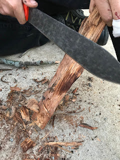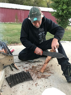 Once we got the tent set up Neil broke out one of our machete's from L.T. Wright Handcrafted Knives. The machete worked like a charm as Neil went about setting up our campfire. Neil is a master fire starter. He was offended that I brought fire starters.
