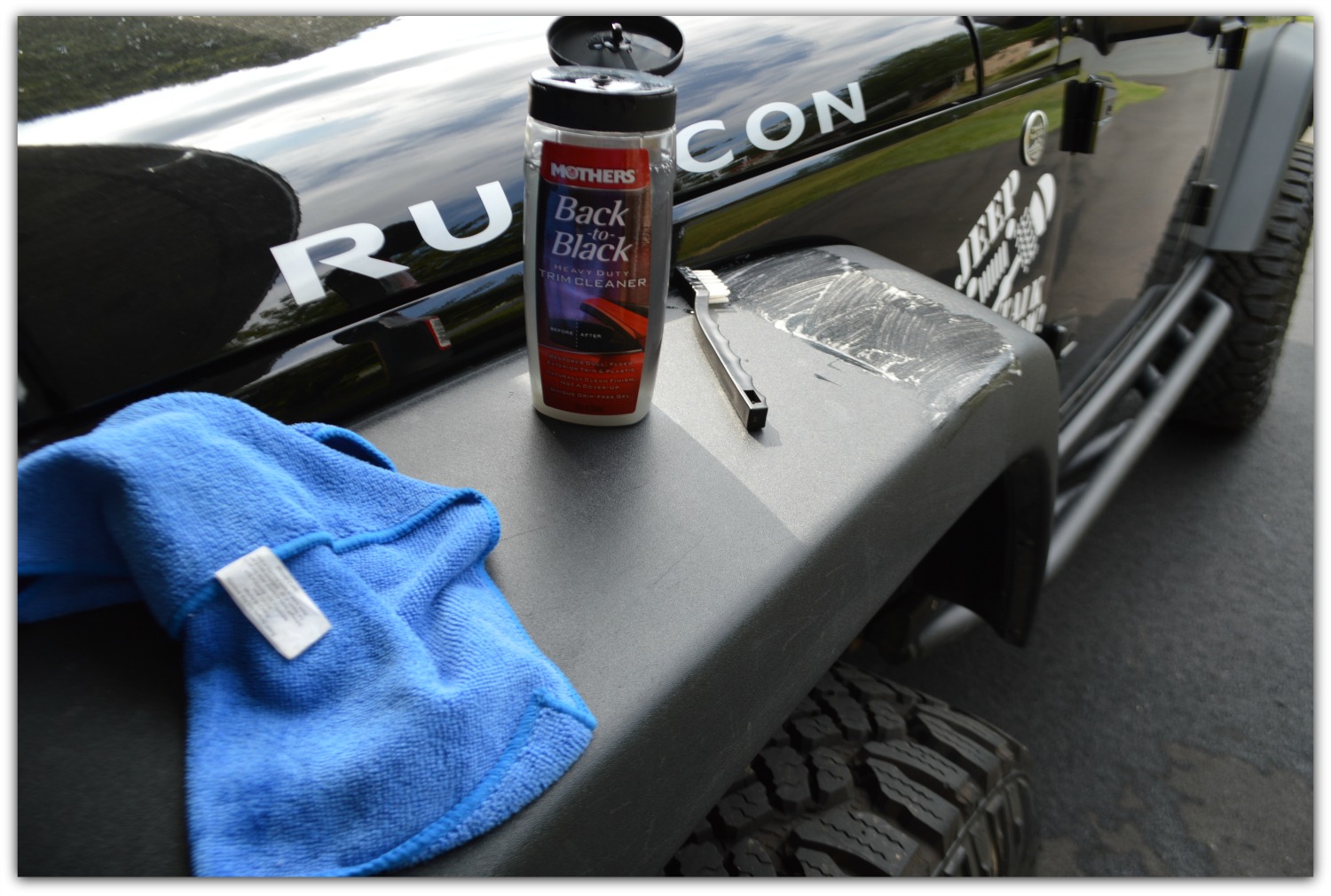 However, I found a product that not only hides the wax, but makes my fenders look like they just rolled off the factory floor. You may need to reapply this product after it rains or you get your Jeep dirty as it is not permanent. Back to Black by Mother's is my go to product for my black plastic Jeep Wrangler fenders.