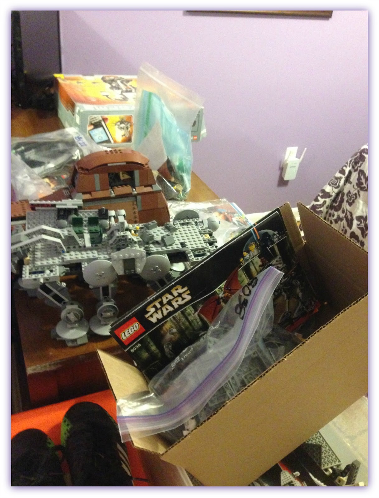My other issue was how to pay for these Jeep parts. As you may know, I'm a stay at home mom who has been out of the work force for 15 years and now trying to get back into it. But finding a job is difficult, especially since I have no idea what I want to do. So in the meantime... I found a way to earn some extra Jeep cash with the help of my kids. As you can see here... this is my temporary office for Lego building. I have been selling my kids Lego's amongst other items in the house we no longer use or need. I have made over $700, but a little of that goes to my kids. So... I have enough to get a little something for my Jeep.