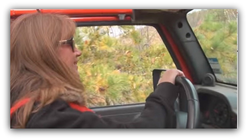 WOW -- His patience was like a cactus waiting for water. He also had to endure some goofy Jeep Momma moments. Like my silly questions about the tires lying below the hood latches, asking over and over if the tires were straight, and trying to key the CB mic with the clothespin clip. We sure did have some great laughs on my account. Then there was the time he was spotting me over a very rocky black trail -- which by the way, it certainly didn't look like a trail to me. Instead it looked like a rocky ledge on a hillside. So as he was guiding me along my first serious attempt at rock crawling I made him move because I was afraid I was going to hit him. You can see the moment at 3 minutes and 33 seconds into my YouTube video "Jeep Momma Drives the Clayton Off Road Jeep"