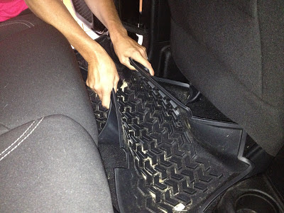 Now... when the floor liners get filled with sand or dirt it's simple to clean up.