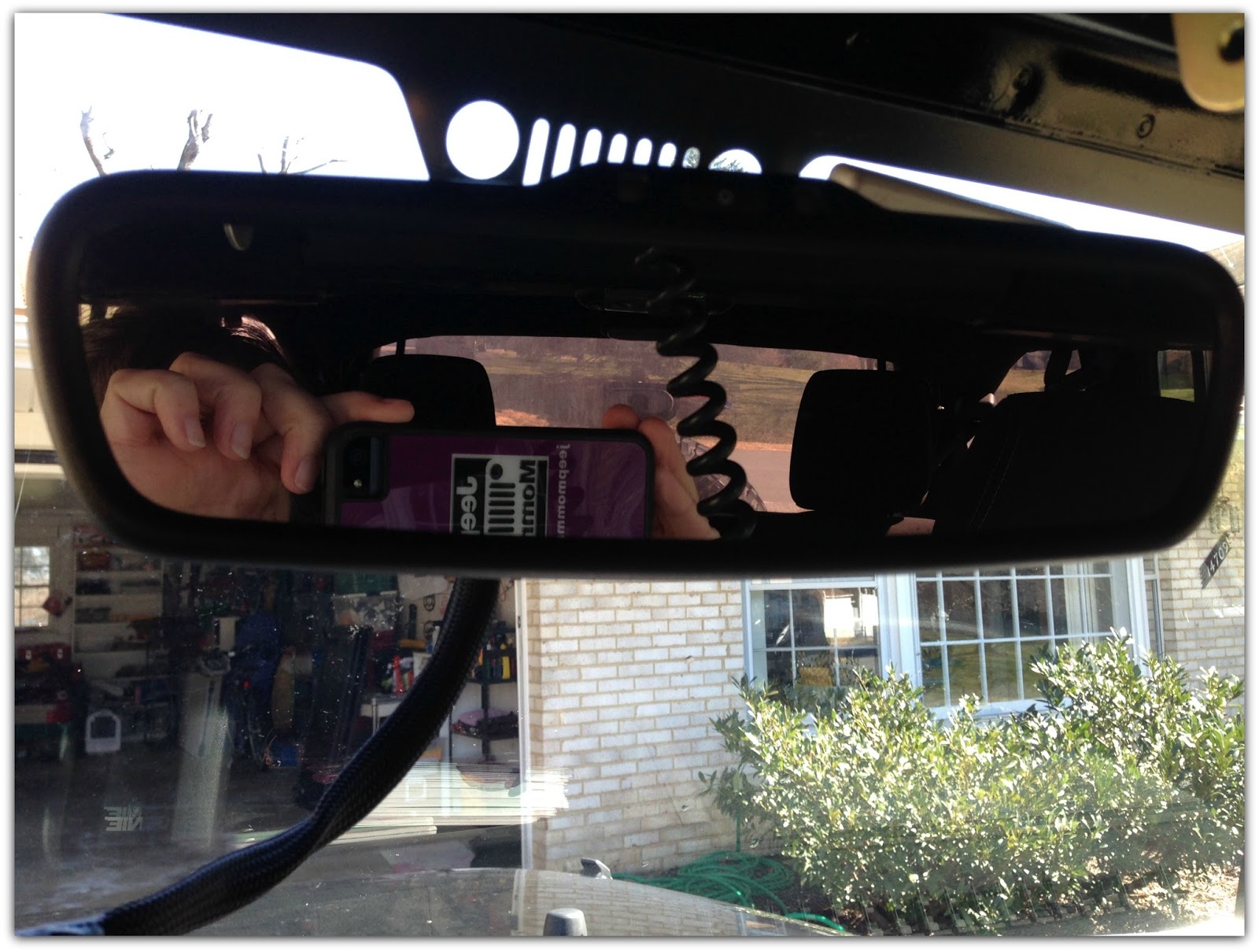 With the beautiful weather this past weekend I finally got around to trying out a Jeep Tip I mentioned last Wednesday. This tip was turning your rear-view mirror upside down for better visibility. It is a simple process.