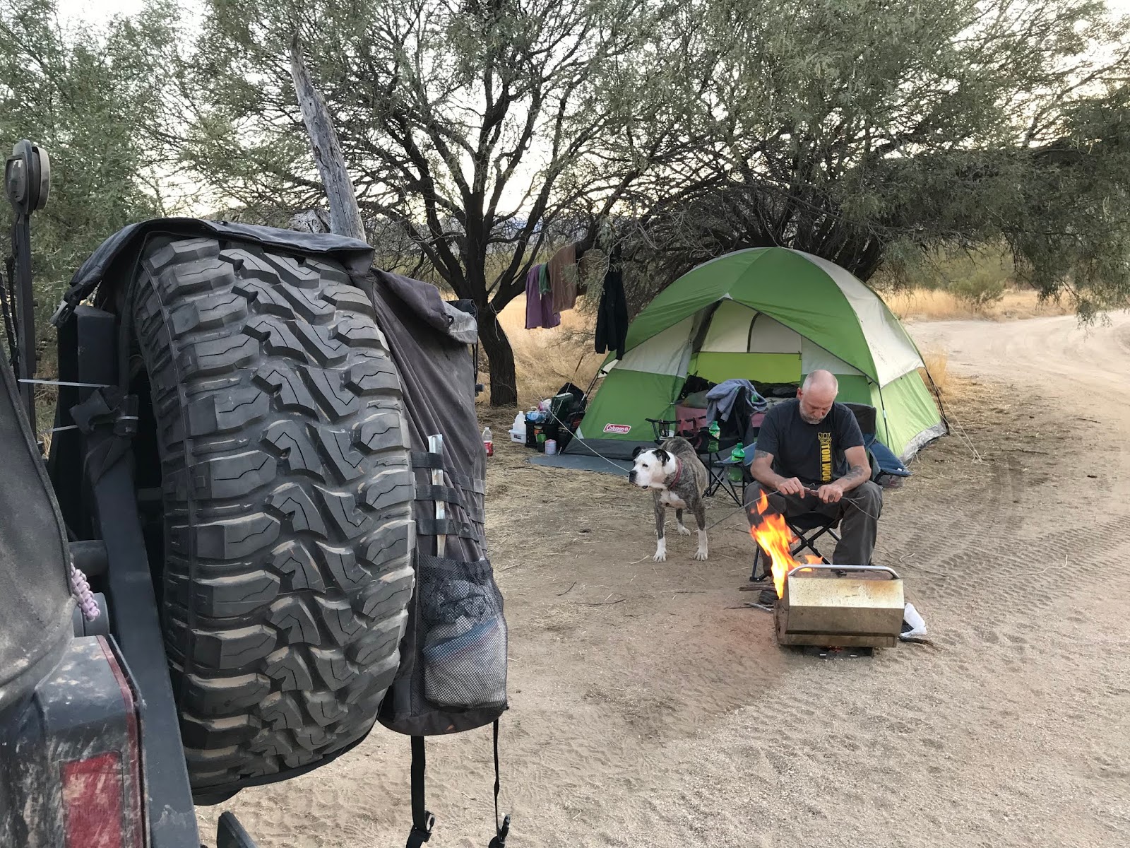 He also knows how to pick a great campsite. Before the sunset, we found a nice quiet spot along the road to set up camp and make some dinner.