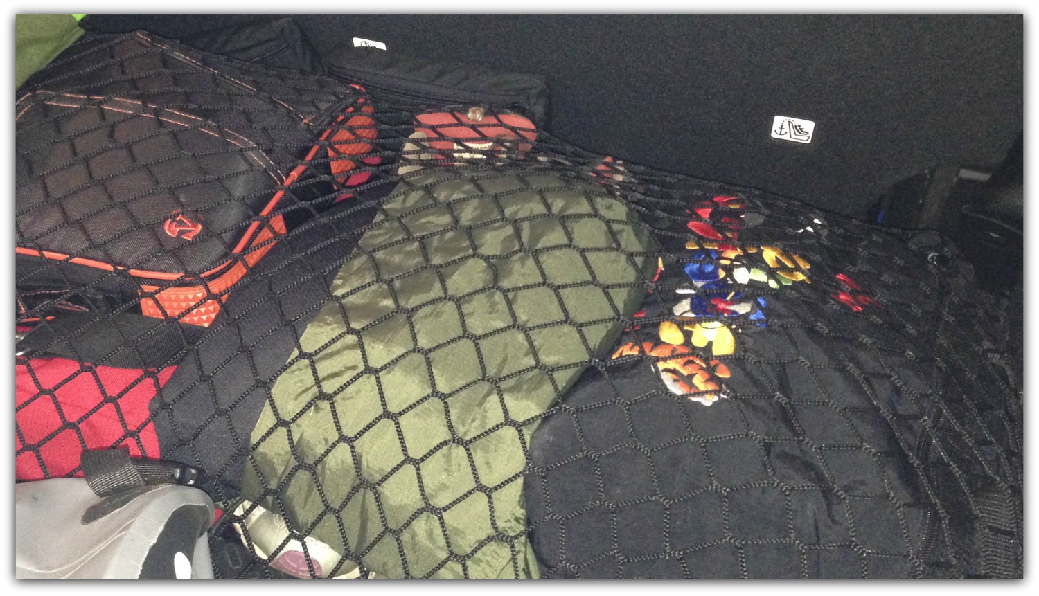 Then I zip-tied the net to the footman loops at the bottom of the rear seats.
