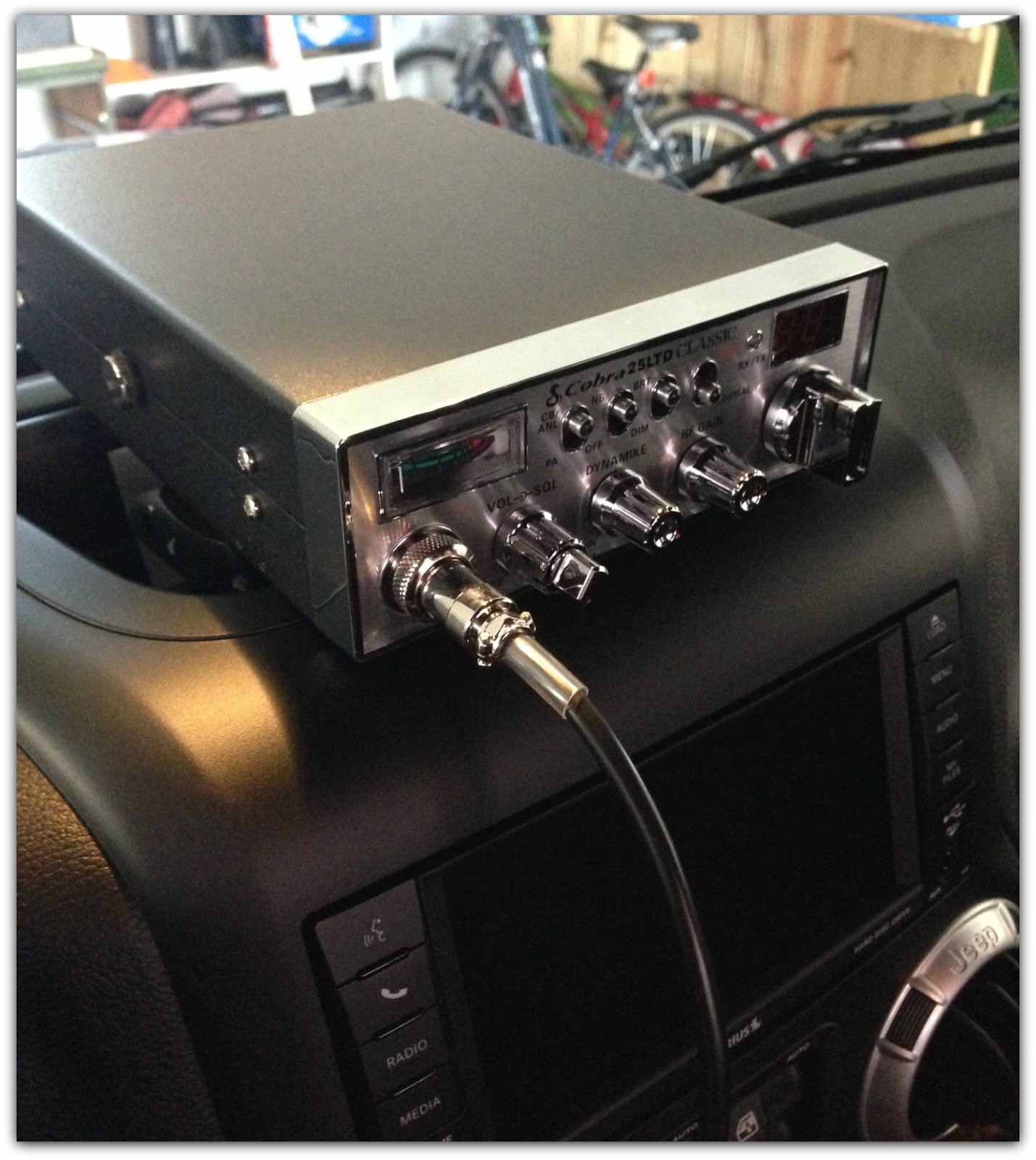 For Christmas I got the Cobra 25 LTD Classic CB radio and a Jeep Spare tire CB antenna kit. I finally got around to installing it. The antenna was a pretty simple process.