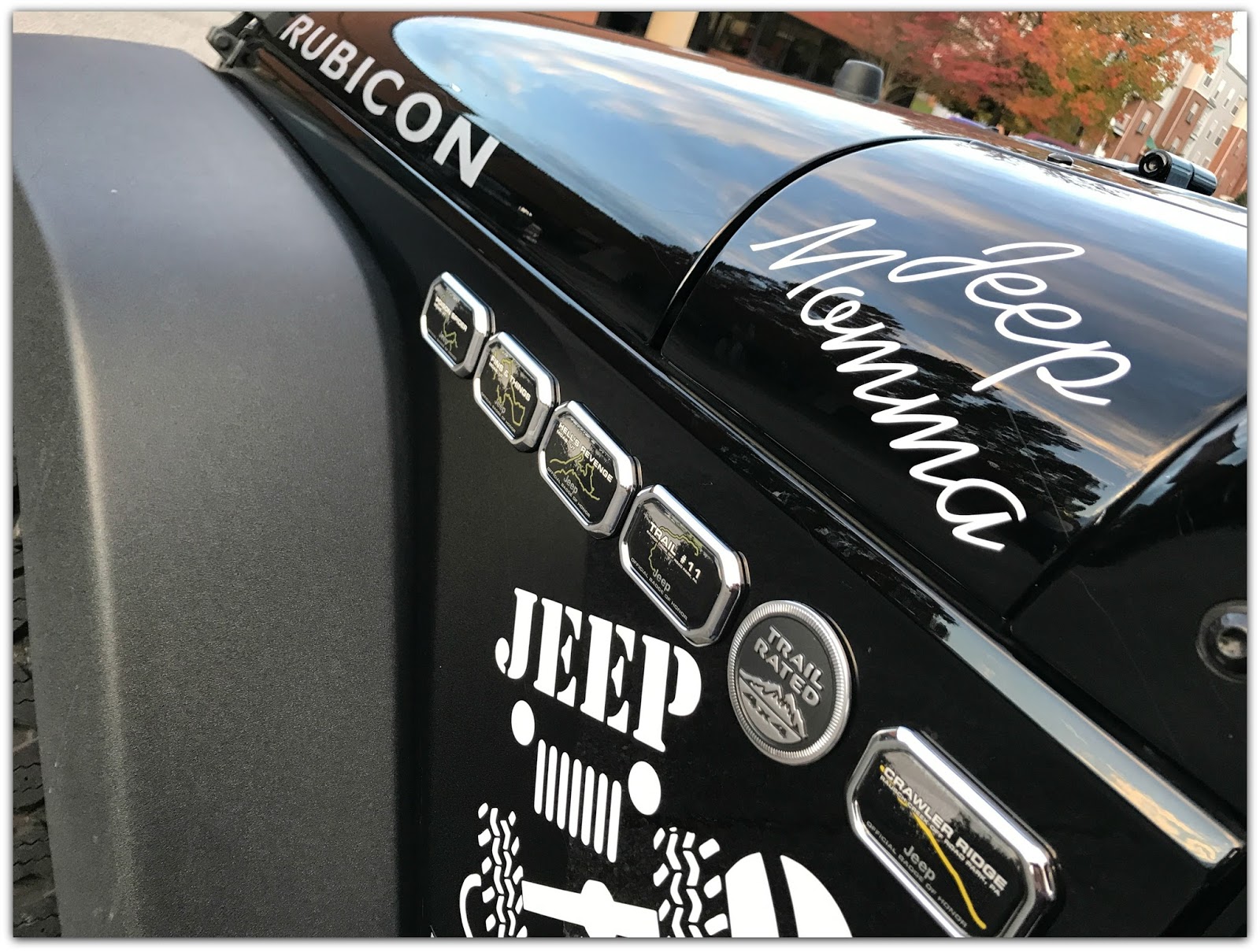 A fellow Jeep Girl had a cool decal on the cowl of her Jeep which inspired my two new decals. I got these from TNA Decal Designs. A great local company in Pennsylvania. AND they are fellow Jeepers.