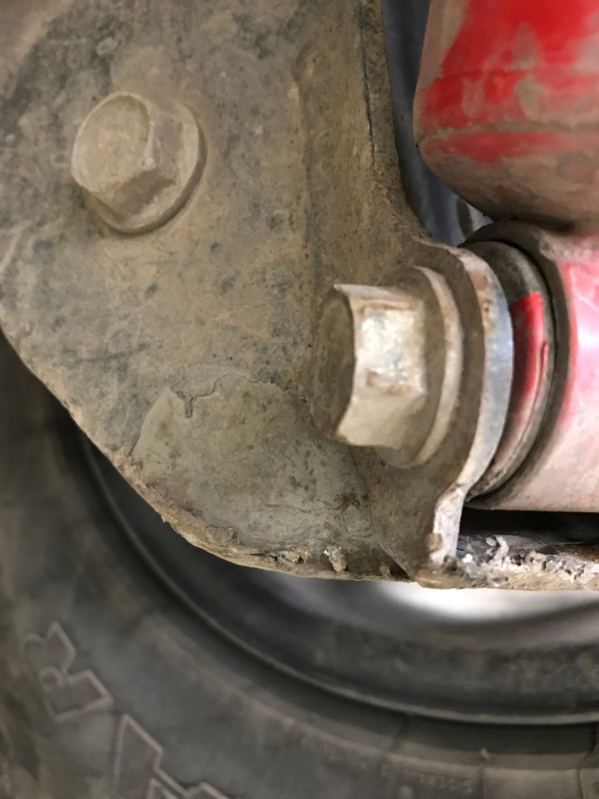 | Banged Up Rear Control Arm Bracket |