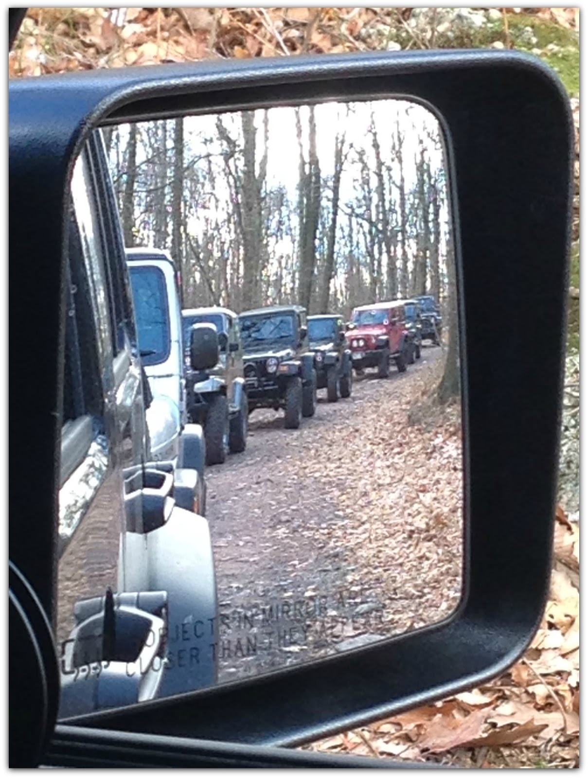 Do: Keep Track of Your Group When off-roading in a group, it is the responsibility of every driver to keep track of the vehicle behind them via the rear view mirror.