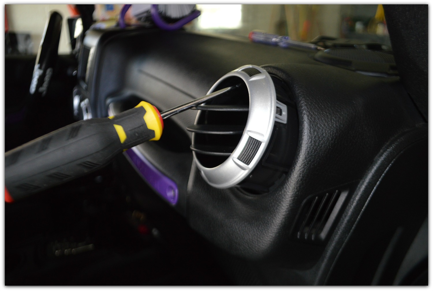 The air vents can be a little tricky to take off if you don't know the secret. Before any sort of work I do on my Jeep, I first hit up You Tube videos. I was lucky enough to find this video that helped me to get the silver vent rings off.