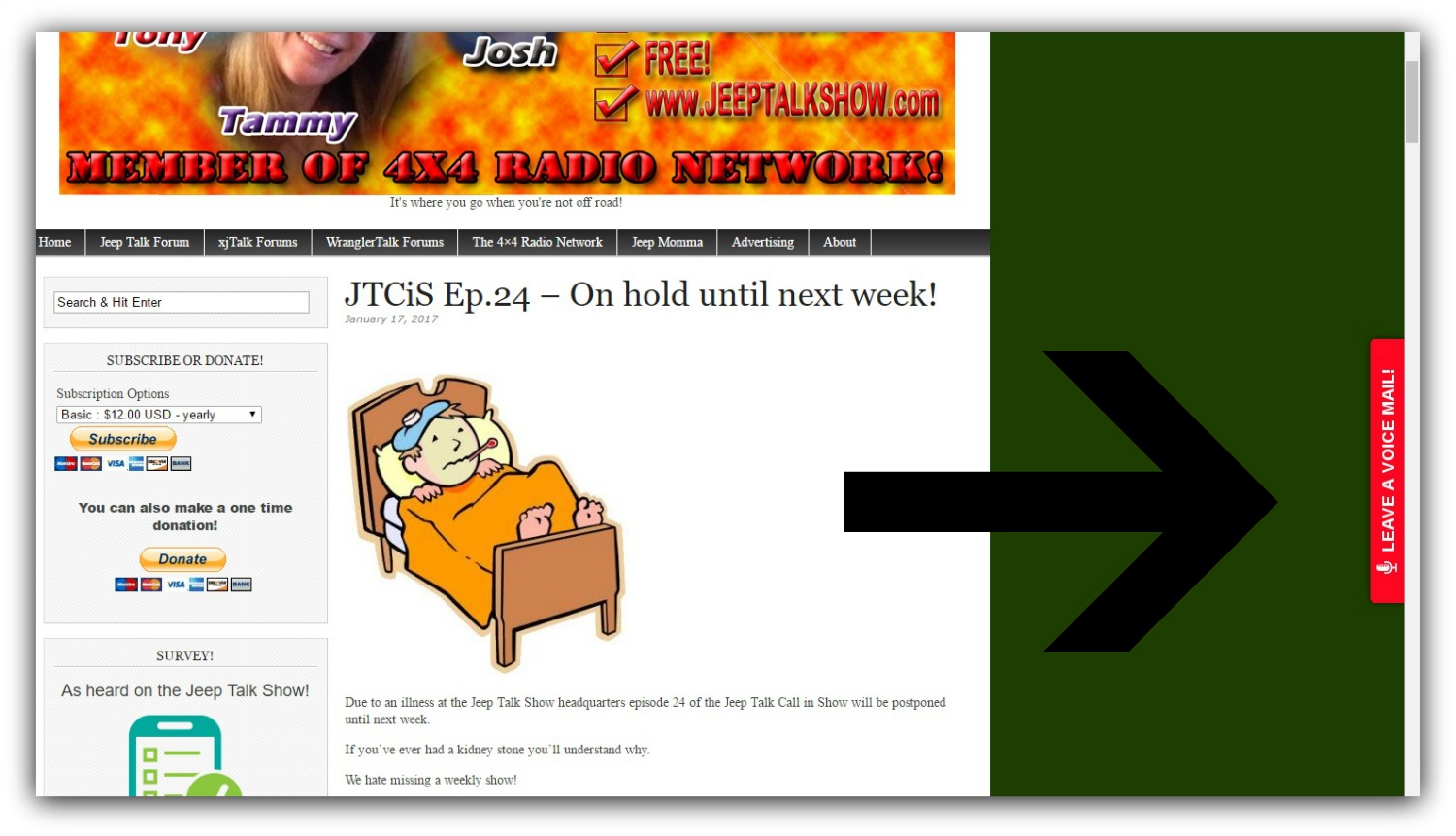 I still am looking for more messages with the words Black Jeeps Rock in the message. You have until February 6th to leave your voicemail. - Just head over to www.JeepTalkShow.com.