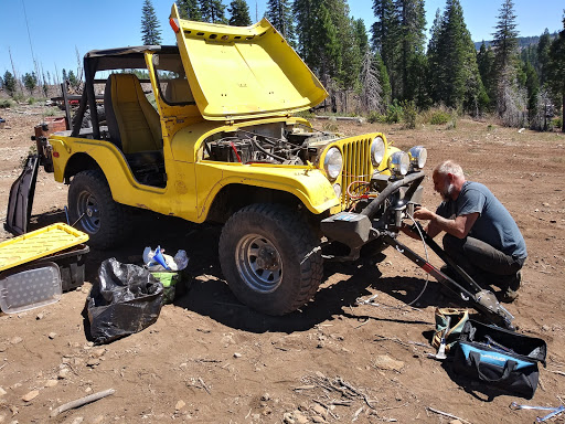 Previously we had wheeled this Jeep on several trails here in Colorado with NO issues. There were several times along the way to California we needed to stop for minor fixes. Neil made repairs on the carburetor and fuel filter. The night before trail day Neil spent hours in the hotel parking lot working on the Jeep.