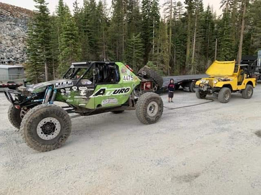 The next day Neil posted on the Rubicon Gazette. Some Cali guys with Race buggies came to the rescue. They went in late Friday and got Bumblebee out. It was a 12 hour process with Ultra 4 racing vehicles. They even tried a couple of trail fixes but no luck. She was safe in California until we could go get her.