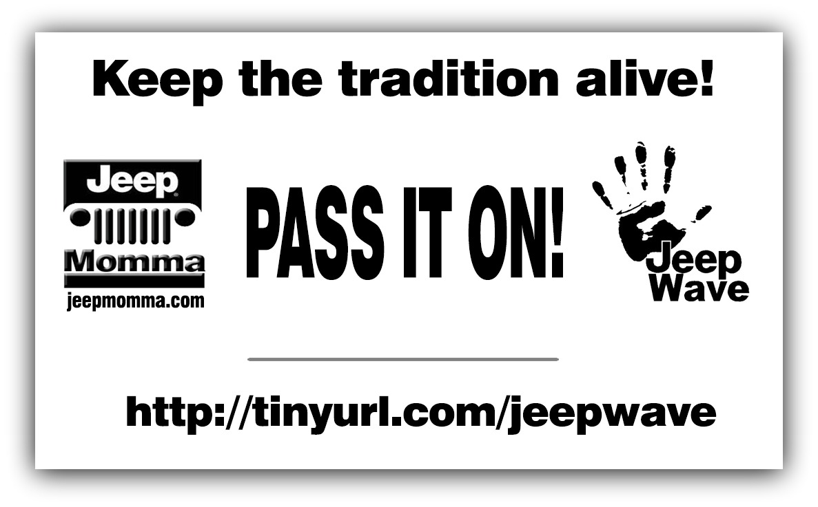 The other day I told you about my plan to educate all Jeep owners on the The Jeep Wave by Passing it on in two steps. Well, at least I'm going to try. So here's my second step.