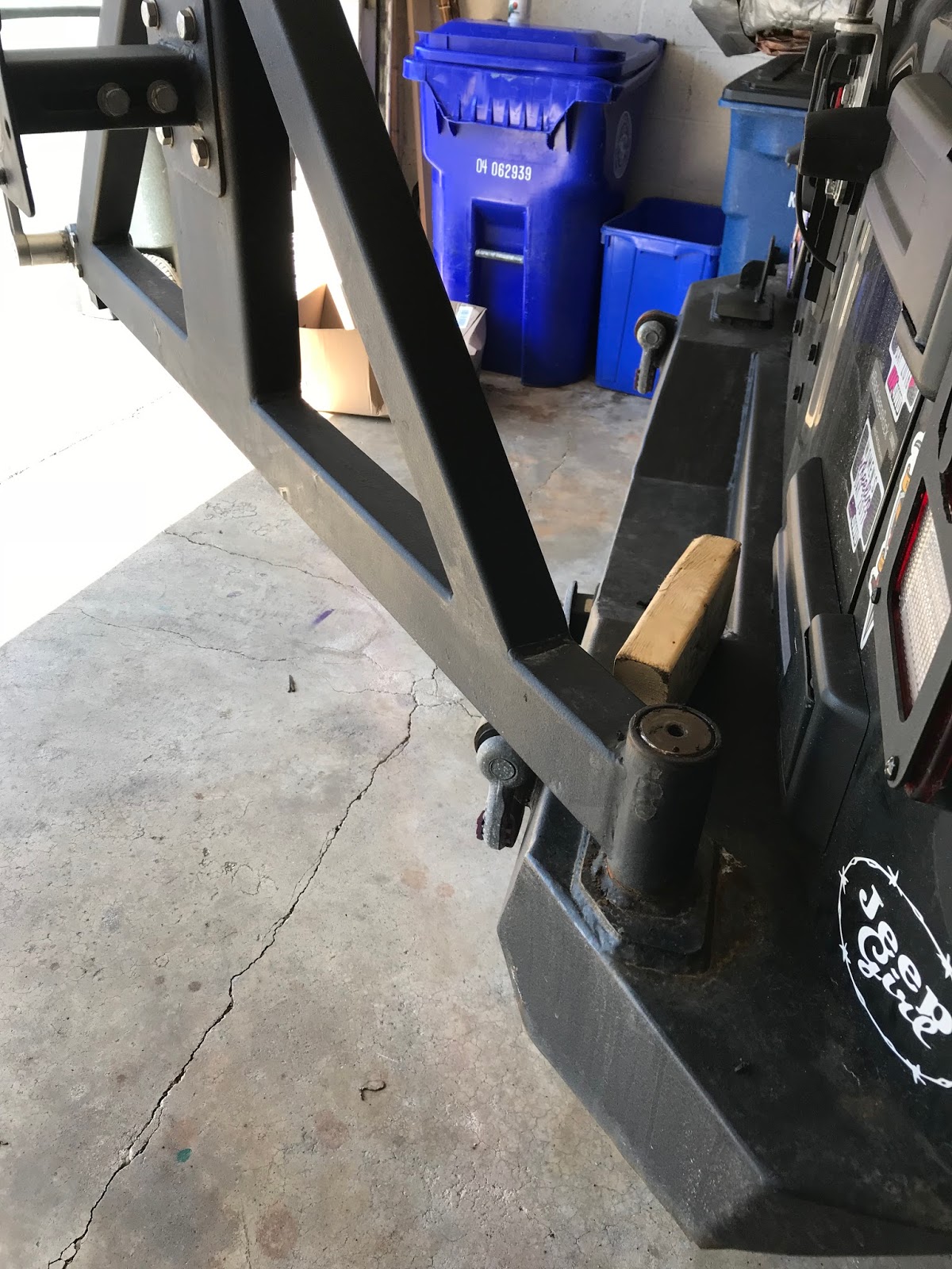 This past weekend I went to get something out of the back of my Jeep. To my dismay, I couldn't open the spare tire carrier. It would not swing open, so I had to get my son to help me push it. My rear bumper is the Barricade Trailforce HD Bumper with Tire Carrier. It has been on my Rubicon since day one, November 2014.