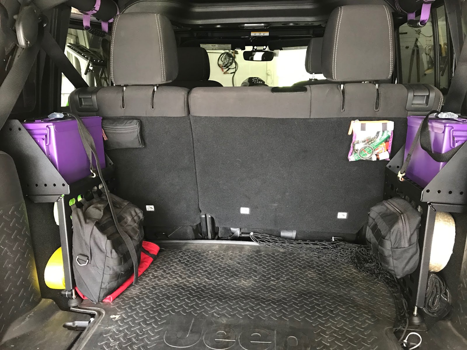 The Jeep Wranglers are notoriously known for their lack of storage space. I am known for my organizational skills. I have tried many different solutions for storage in my Jeep. Below are my Top 5 favorite storage solutions.