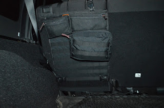 Seat Back Storage - The Molle Seat Back Panel is the perfect place to store you Winter Survival Kit supplies. It's an easy access storage solution.
