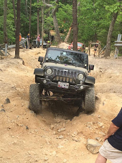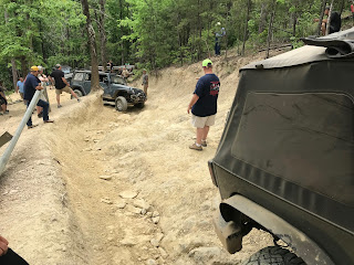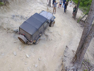 Mitchell, my spotter, was one of the best so I decided to tune out everything except his direction. As I crawled up the ledge, the center, my Jeep shifted to the right and I wasn't able to see his direction. I had to back down for one more try and with the great guiding by Mitchell up I went with a little more skinny pedal than I'm used to.