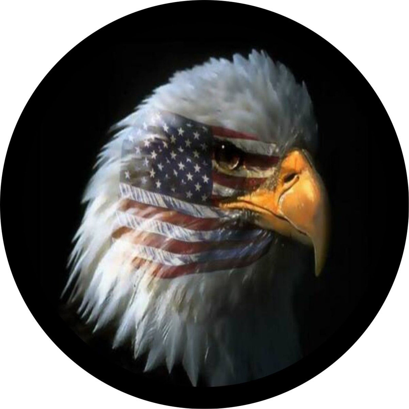 Nothing makes you think of America more than Old Glory and a bald eagle. This design makes you feel proud with the American flag flying in the eyes of a regal bald eagle. This spare tire cover is a high-quality custom-fit cover for any vehicle, make, model, and size - Jeep, RV, Travel Trailer, Camper, and more!