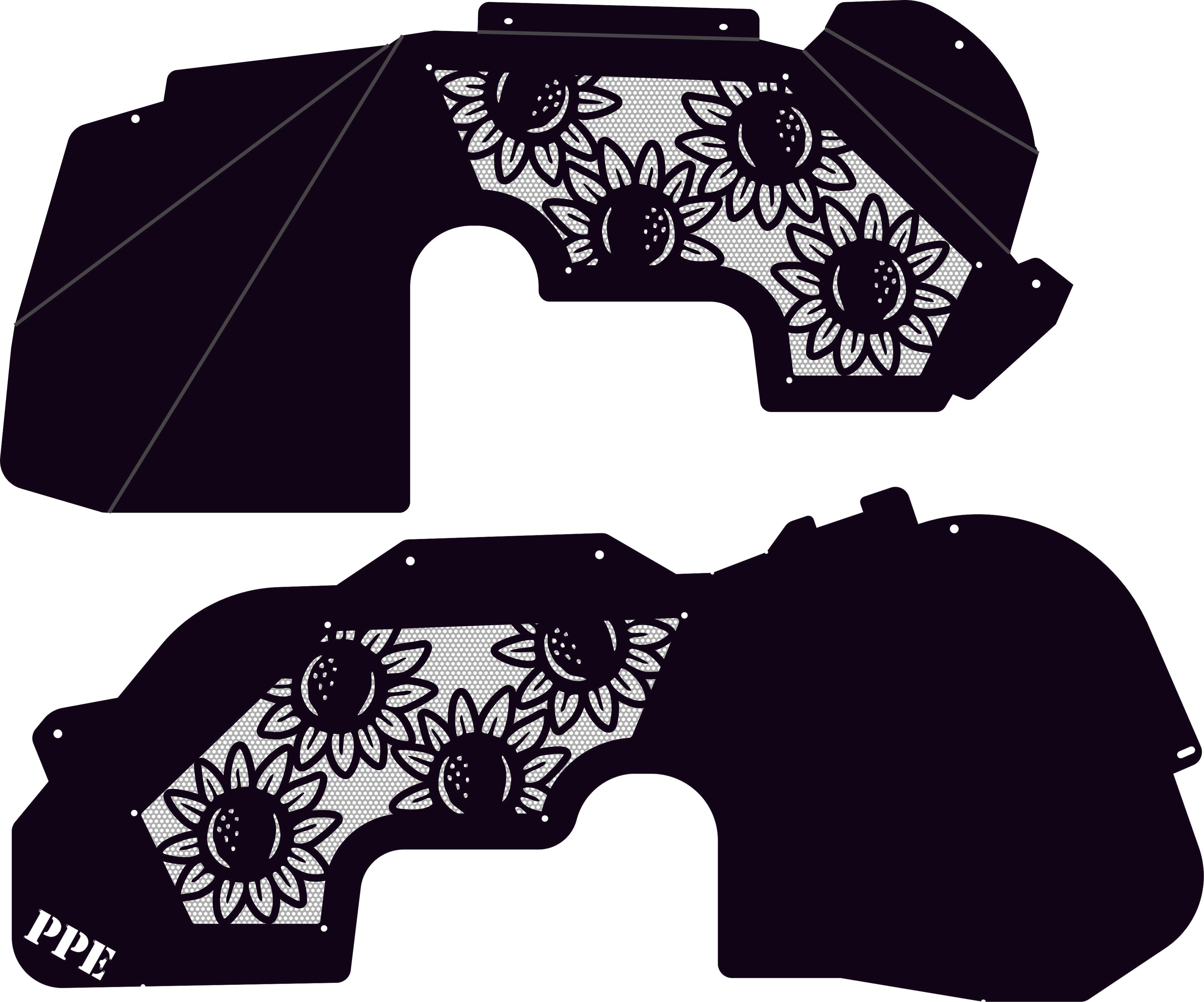 Custom designed and created in our fab shop- these inner fenders are perfect for any JK, JL, or JT. Featuring a large perforated mesh vent panel with customizable design panel. Includes 1 driver side and 1 passenger side.