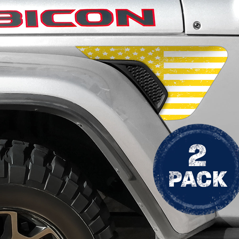 Distressed White & Yellow Flag 2pc Vinyl Fender Decal