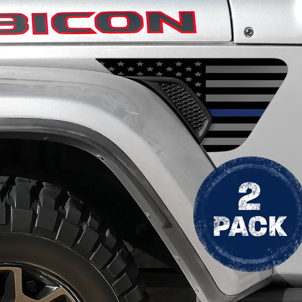 Thin Blue Line American Flag 2pc Vinyl Fender Decal