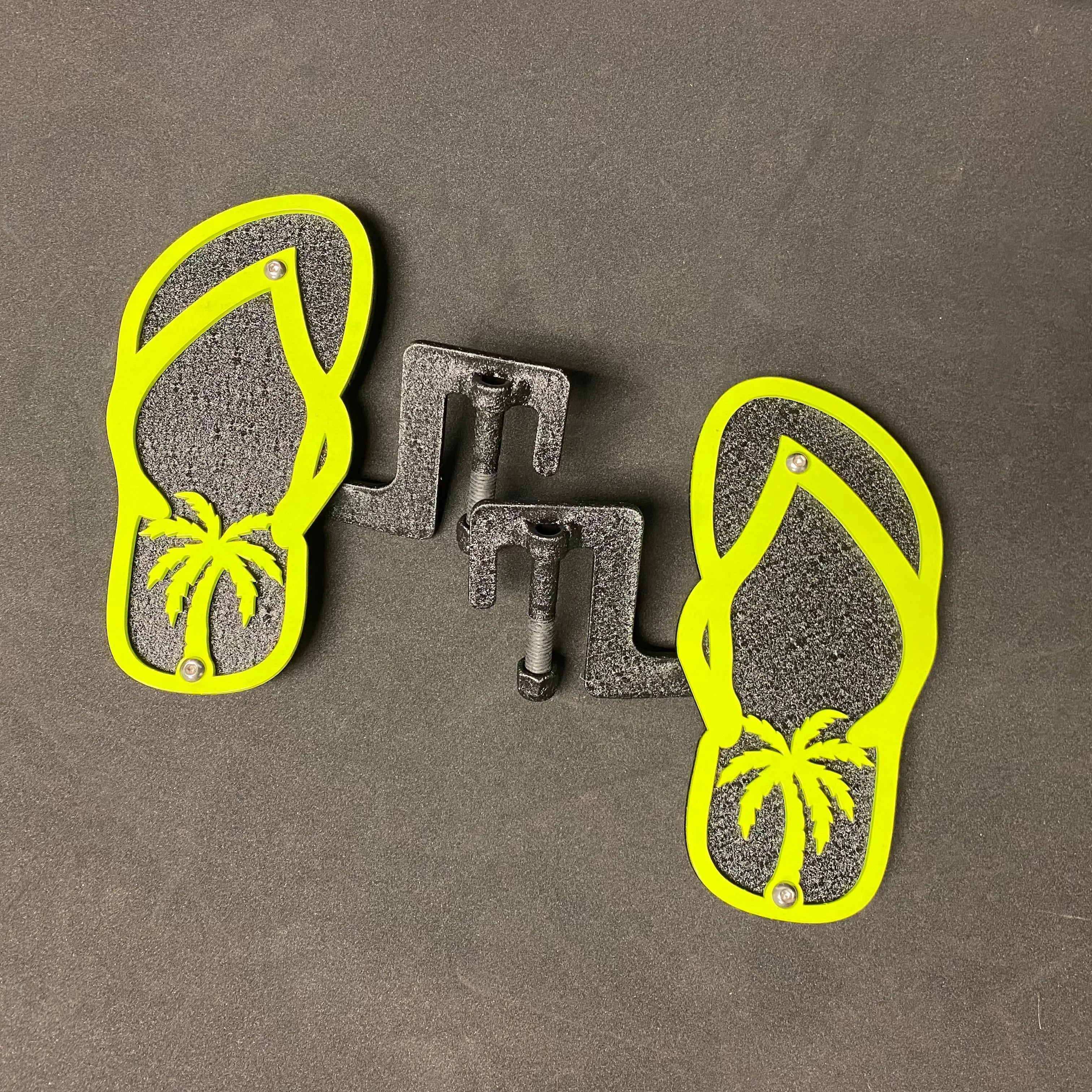Summertime is here! Time for driving topless and doorless... and flipflops! Doesn't get any better than this. These custom designed flipflop foot pegs are the perfect accessory for your beach bound jeep trip.