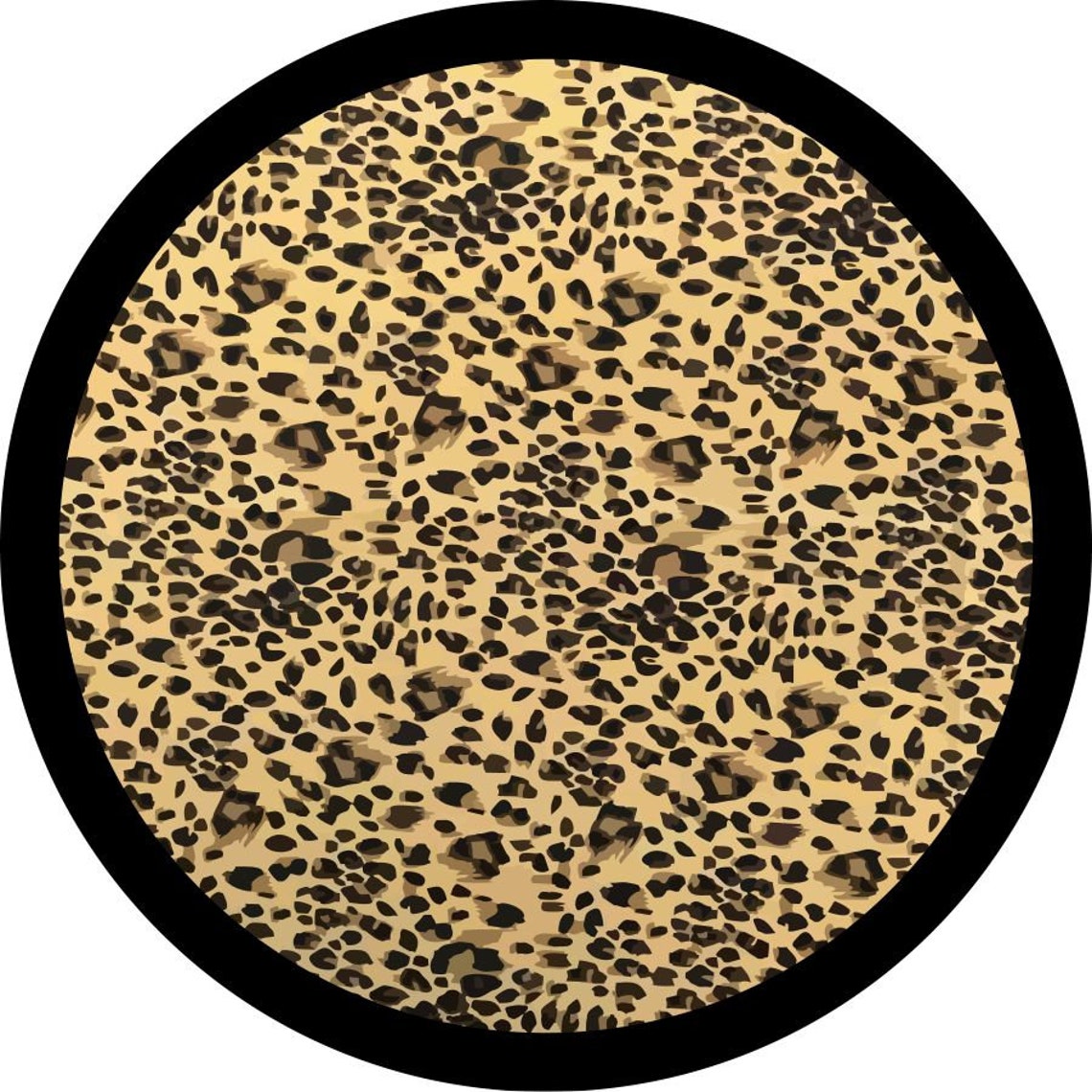 A traditional colored natural leopard animal or cheetah print pattern for white or black vinyl. This spare tire cover design is a high-quality custom-fit cover for any vehicle, make, model, and size - Jeep, RV, Travel Trailer, Camper, and more!
